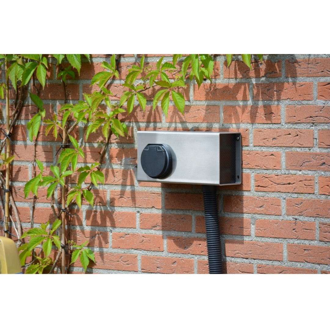 Gemaakt van massief RVS met een afwerking van echt carbonfiber, straalt deze wallbox pure klasse, kracht en precisie uit. Speciaal voor deze Launch Edition wordt hij standaard geleverd met: